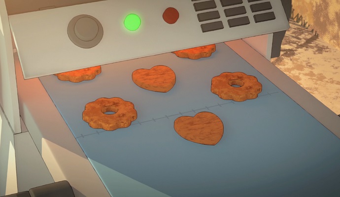 The film‘s storyline focuses on the relationship between Mr. Cabrioni, his energetic bird that follows him wherever he goes, and a rusty robot that boasts a generous experience in manufacturing biscuits. The old man finds the industrial machine in a storehouse, saves it, and helps it get rid of the artificial additives that ran through its DNA. After such a lovely treatment, the robot rediscovers the purity of natural ingredients and a passion for craftsmanship of quality products.