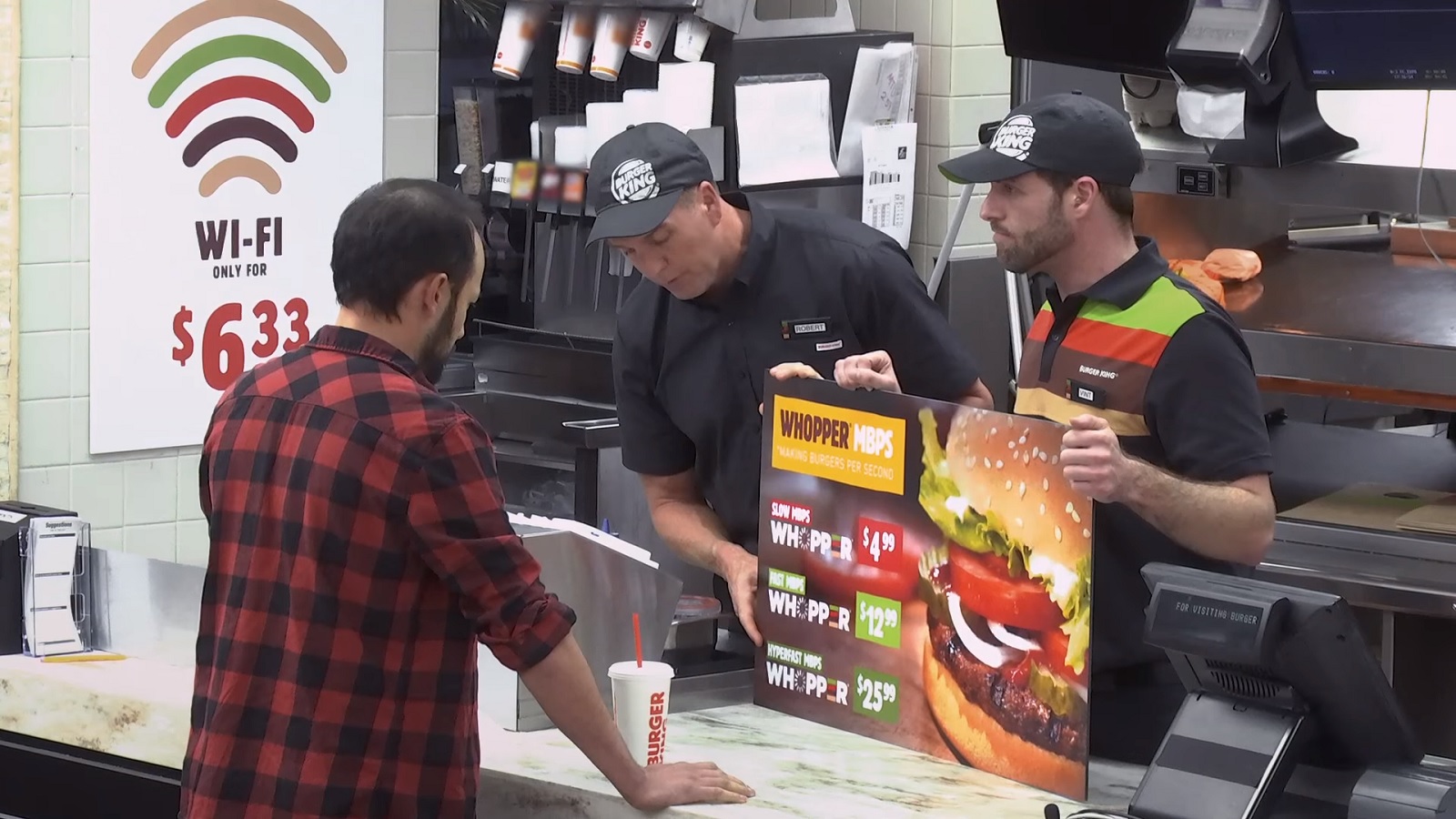 To bring the customers as close as possible to the sa(i)d scenario that will slowly change the internet as we know today, Burger King updated its menu and listed three different prices for the same sandwich, the Whopper. Within the menu, there were slow, fast, and hyperfast MBPS Whoppers at the price of $4.99, $12.99, and $25.99 respectively. Normally, the MBPS stands for “megabits per second,” but in Burger King’s context, the abbreviation stands for “making burgers per second.”