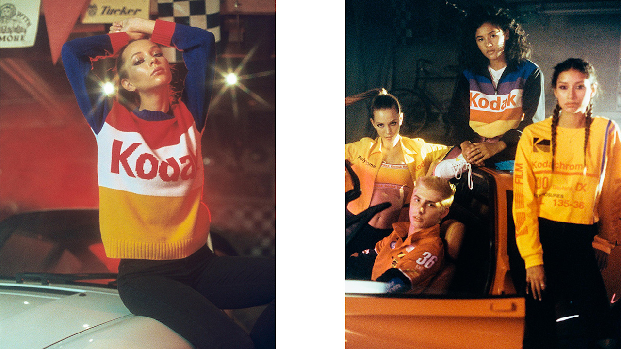 The Fall 2018 line features many of the original colours from Kodak’s 1990s branding and packaging and draws inspiration from the company’s days as a standout NASCAR team sponsor. The collection offers women’s t-shirts, crop tops, jackets, and loungewear; the men’s line includes tees, polos, pullovers, and jerseys. All in all, over 26 different, limited-edition garments are now available in 600+ stores globally in various sizes.